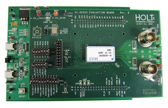 The ADK-62203 2-board assembly and C project reference design provides a ready-to-run evaluation platform demonstrating operation of Holt's HI-62203 BC/RT/MT terminal device. The HI-62203 is a direct pin compatible drop-in replacement for the Data Device Corporation (DDC®) Total-ACE® Family of MIL-STD-1553 Terminals. The board comes complete with Holt’s API runtime library, included as executable object code. The API Library provides standard functions for configuration, control, status, and interrupt processing, isolating the programmer from low-level register, RAM and discrete I/O operations. The software is compatible with existing competitor solutions and source code is available on request with a signed Software License Agreement.